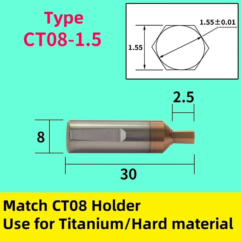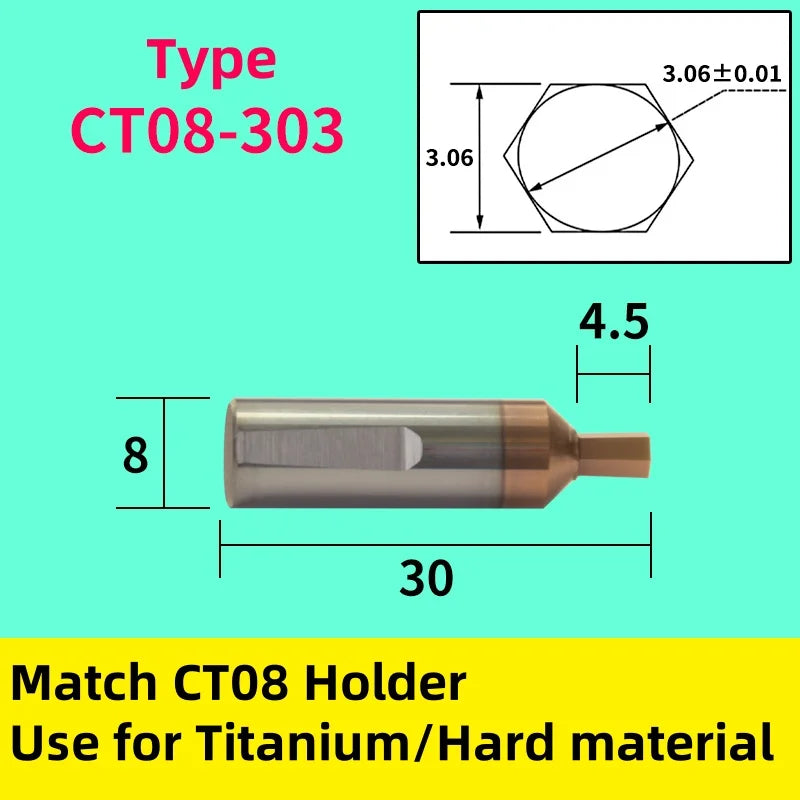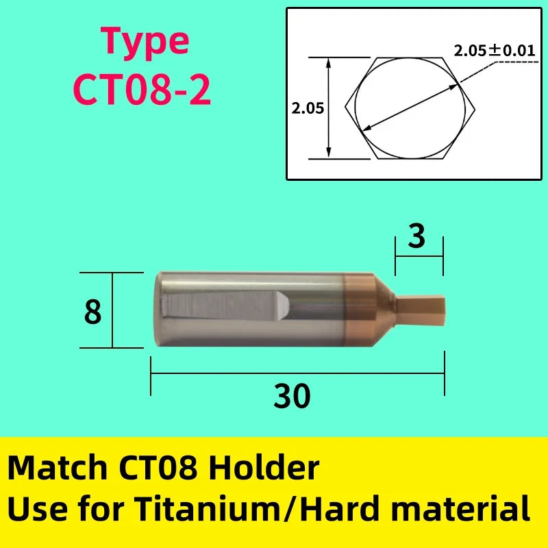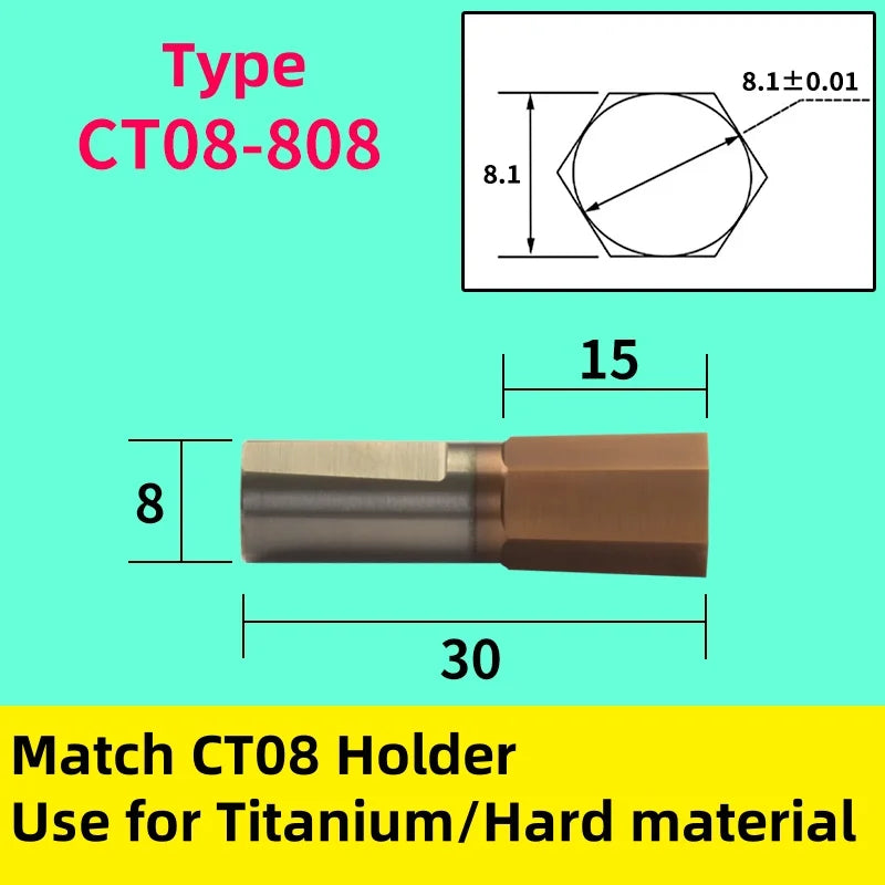 CT08: Ротационный инструмент с карбидно-оловянным покрытием, хвостовик 8 мм, внутренний шестигранник для титана и твердых сталей