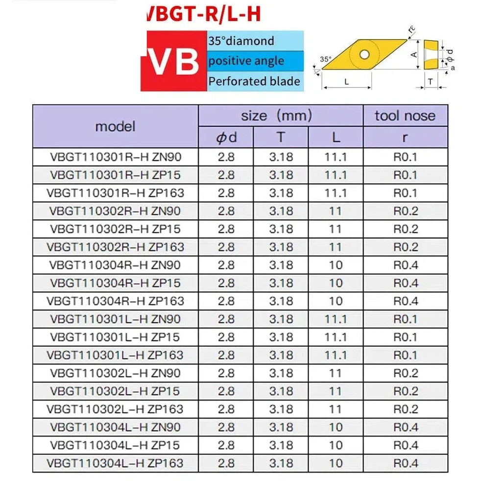 10 шт. твердосплавные пластины VBGT 1103 R/L-H для точной токарной обработки титановых сплавов и твердых материалов на автоматических станках.