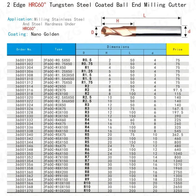 Двухзубый фрезерный инструмент, режущий HRC60, диаметр 1мм, 2мм, 3мм, 4мм, 6мм, для обработки на фрезерных станках, из вольфрамовой стали, спиральное сверло с шарообразным концом.