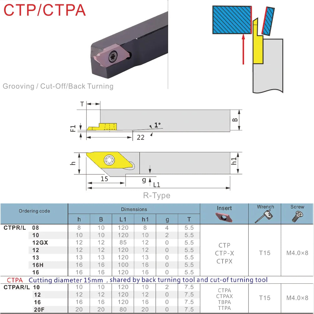 CTPAR CTPAL CTPR CTPL - Держатели инструментов для резки и прорезания канавок в мелких деталях для токарного станка, CNC.
