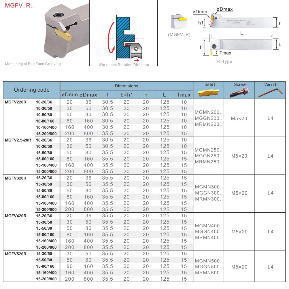 Держатель инструмента MGFV, крепление 20 мм, MGMN 3.0, 4.0, 5.0, для токарного станка с ЧПУ, инструменты для паза и торцевой обработки