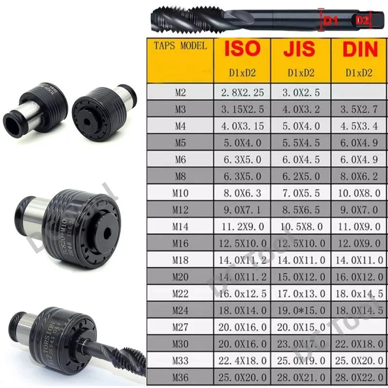 TC820 - Держатель инструмента для нарезки резьбы с защитой от крутильной перегрузки, подходит для ISO JIS DIN371 M4 M6 M8 M10 M14 M16 M18 M20.