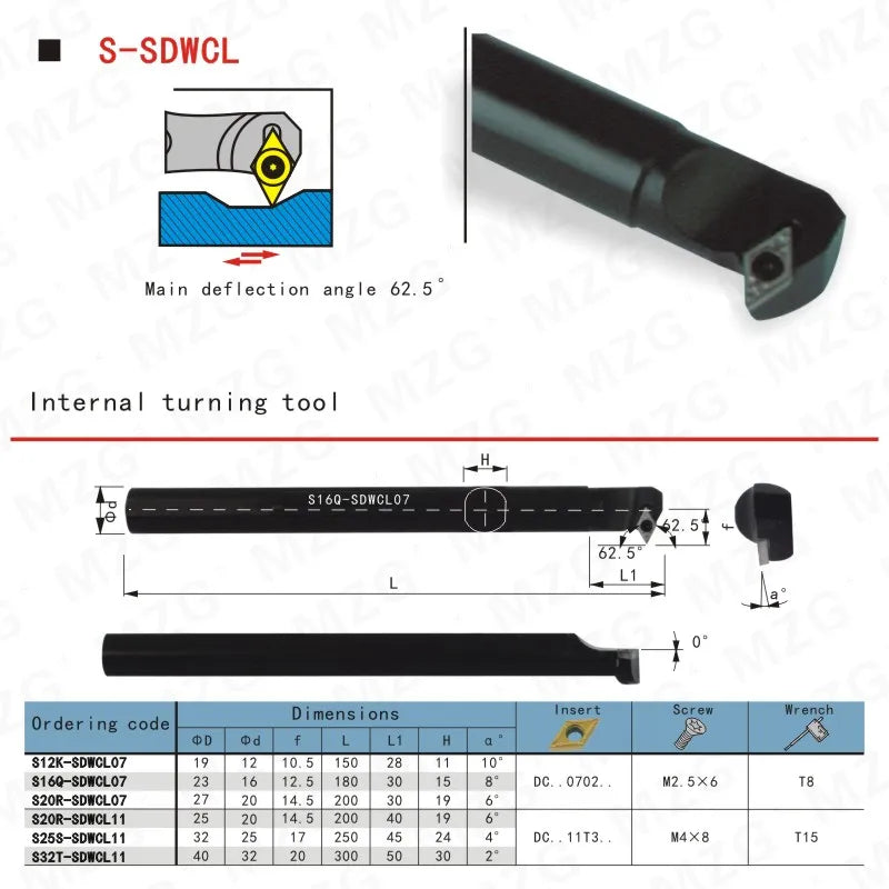 Расточные резцы (державки) S16Q-SDWCL11 для токарного станка CNC, размеры 12мм, 16мм, 20мм, для внутренней обработки отверстий, зажимной тип.