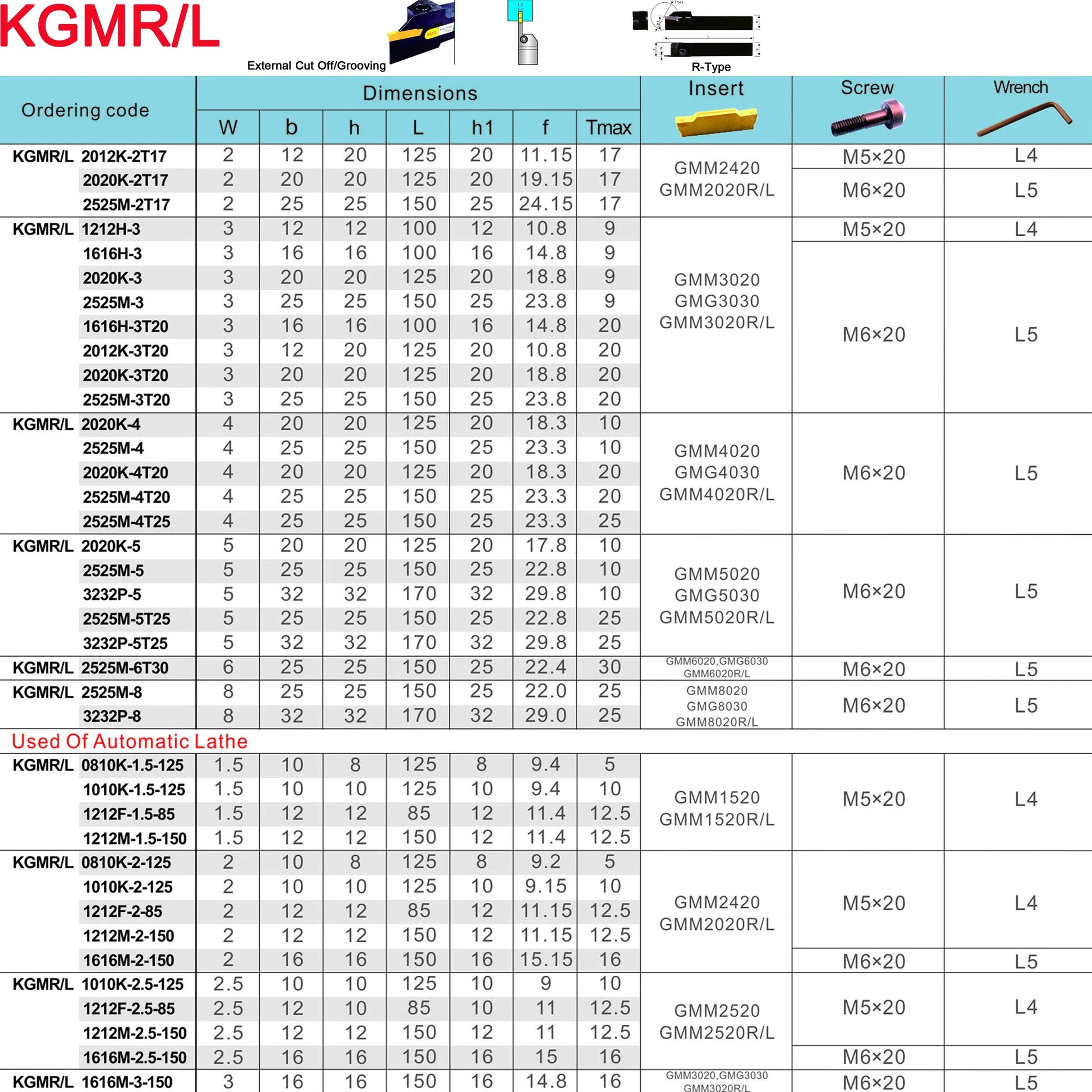 KGMR 10mm 12mm 16mm Держатели инструментов для канавки, CNC Резец для разделения и канавки, используемые для вставок GMM из твердого сплава.
