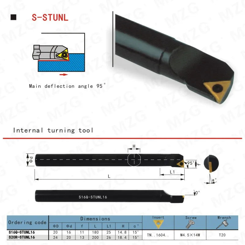 Расточные резцы (державки) S16Q-STUNL16 для токарного станка CNC, размер 16мм, для внутренней обработки отверстий, зажимной тип.